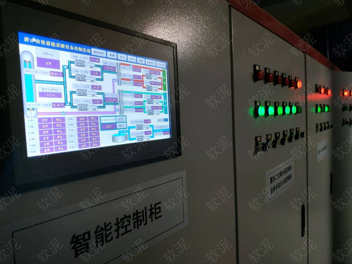| 1. 項目位于唐山市曹妃甸區(qū),北堡村附近。加壓泵使用變頻器根據(jù)管道反饋水壓自動調(diào)速運行頻率,維持自來水水壓恒定。熱水通過板式換熱器獲得蓄熱水箱的熱能,維持熱水恒溫。 2. 水箱蓄熱功能自動運行,反饋電流異常時能自動顯示故障信息(當?shù)仉妰r沒有峰谷) 3. 制熱時二次網(wǎng)水泵不間斷運行,一次網(wǎng)水泵通過間歇運行給板式換熱器維持恒定溫度,從蓄熱水箱獲取熱源。沒有制冷功能。 4. 所有傳感器和設(shè)備運行數(shù)據(jù)接入軟泥物聯(lián)網(wǎng)系統(tǒng),機房自動運行無人值守,通過手機軟件可隨時查看設(shè)備運行情況和修改設(shè)定參數(shù)。 |