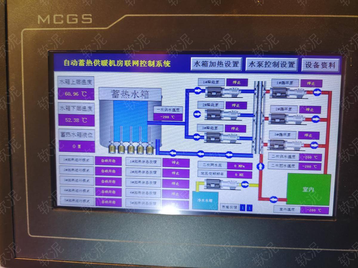 | 1. 項目位于承德市承德縣高寺臺鎮(zhèn)高寺臺村新民居小區(qū),冬季供暖系統(tǒng),夜間谷電價期間給大水箱蓄熱,二次網(wǎng)循環(huán)泵始終運行,一次網(wǎng)循環(huán)泵通過間歇運行,給板式換熱器升溫,維持二次網(wǎng)恒定溫度。白天不蓄熱,只釋放存儲的熱能,節(jié)約電費。 2. 現(xiàn)場沒有人值班,通過手機(jī)軟件隨時可查傳感器數(shù)據(jù)。不限管理人員人數(shù),每人實名賬戶,自動保存操作記錄。 3. 設(shè)備可選擇自動模式,根據(jù)設(shè)定參數(shù)自動啟停。也可選擇手動模式,直接啟停每個設(shè)備用于調(diào)試檢修。 |