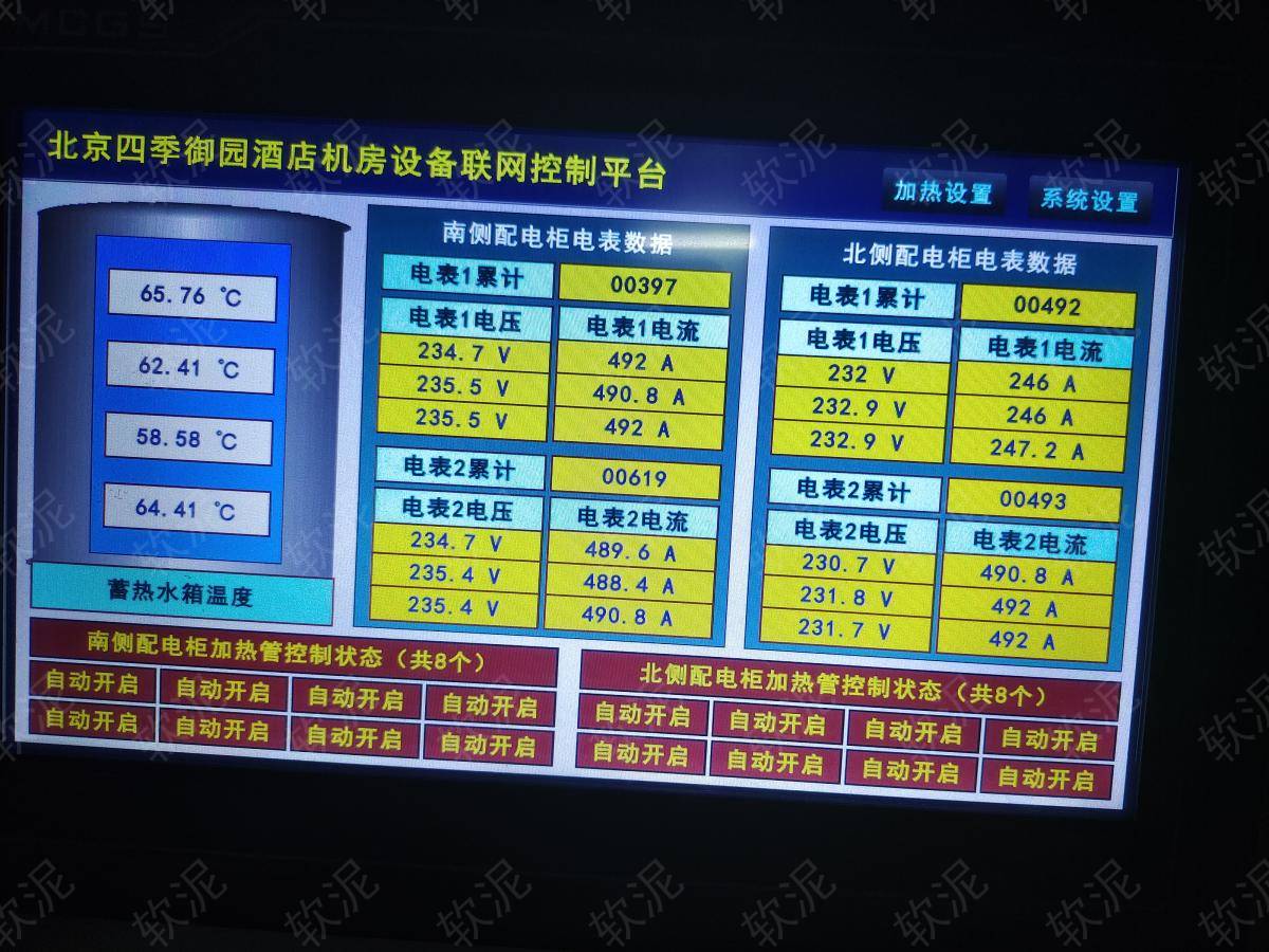 | 項(xiàng)目位于北京市海淀區(qū)北旱河路168號(hào)-3號(hào),酒店機(jī)房通過(guò)軟泥物聯(lián)網(wǎng)設(shè)備實(shí)現(xiàn)數(shù)據(jù)聯(lián)網(wǎng),管理人員無(wú)需到現(xiàn)場(chǎng)值班,即可遠(yuǎn)程查看系統(tǒng)運(yùn)行情況,啟停每個(gè)被控設(shè)備,設(shè)定自動(dòng)運(yùn)行的啟停時(shí)間和啟停溫度。 電表數(shù)據(jù)實(shí)時(shí)上報(bào)到云平臺(tái),管理人員可以遠(yuǎn)程抄表記錄能耗信息,查看實(shí)時(shí)運(yùn)行電流來(lái)判定設(shè)備是否運(yùn)轉(zhuǎn)正常。 |